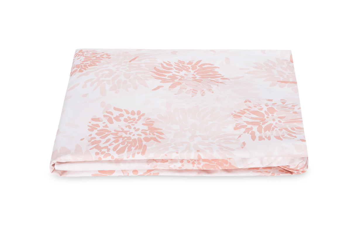 Chrysanthemum is a Matouk Tillett style inspired by one of Tillett's most iconic prints. Originally designed by d.d. Tillett and famously featured in Jacqueline Kennedy Onassis’s Hyannis Port home, this beautiful pattern on crisp Luca percale features a flowing floral motif and soft, painterly lines. It lends a graceful, romantic sensibility to the bed.