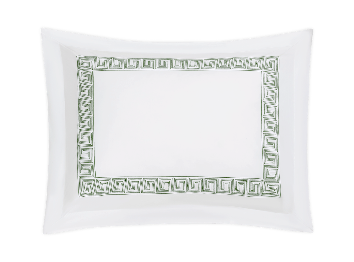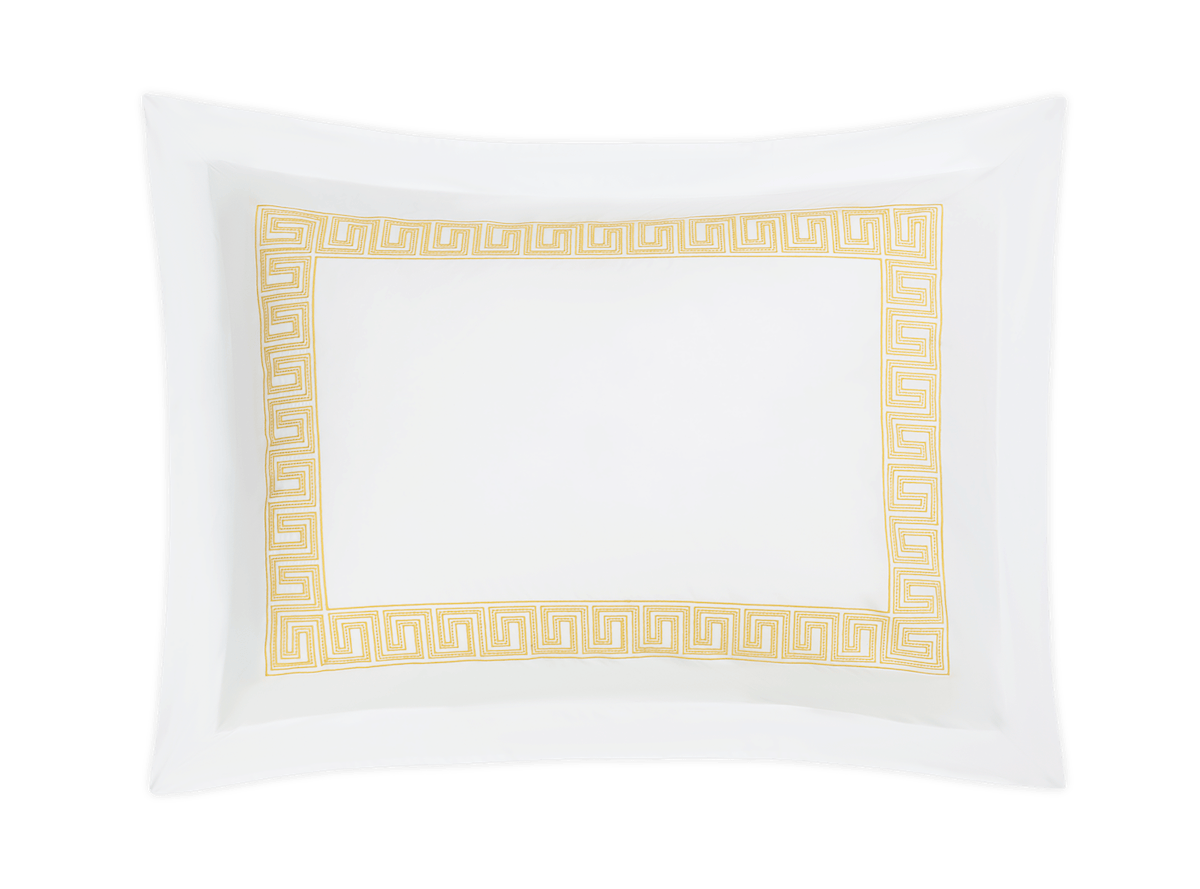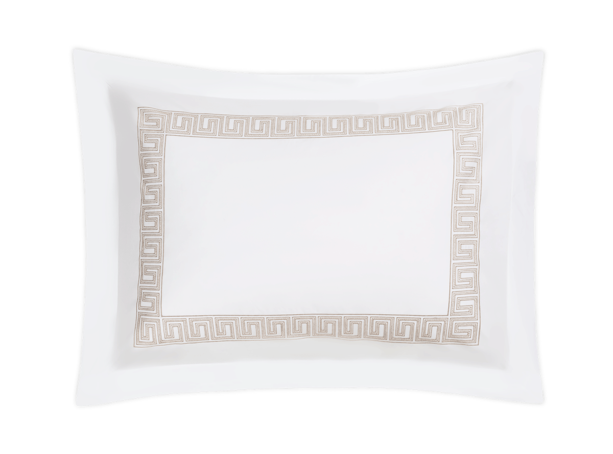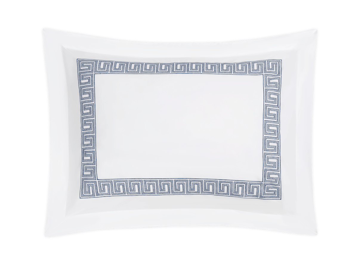 Inspired by an intricately beaded Schumacher tape, our boldly embroidered Ophelia collection embodies a traditional Greek key pattern with a bespoke sensibility. In 520 thread count Ceylon sheeting, it’s a playful, exuberant take on a traditional motif.